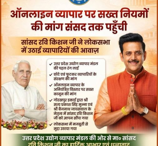 ऑनलाइन व्यापार के विरुद्ध व्यापारियों की बुलंद हुई आवाज: सांसद रवि किशन ने लोकसभा में उठाई सख्त नियमों की मांग