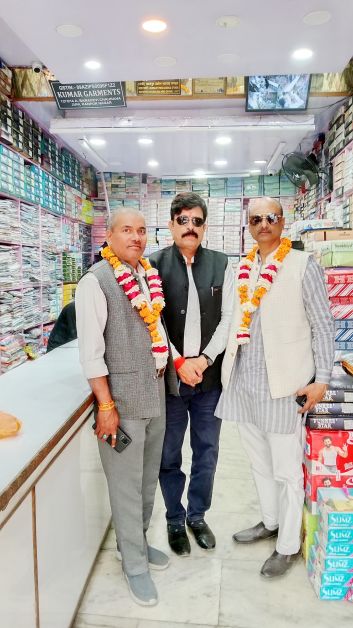 आज कानपुर उद्योग व्यापार मंडल (दक्षिण) के नवनिर्वाचित जिलाध्यक्ष अचल गुप्ता एवं पूर्व सभासद तथा नवनिर्वाचित महामंत्री पवन तिवारी का हमारे बारादेवी चौराहा, कानपुर स्थित प्रतिष्ठान कुमार गारमेंट्स में प्रथम आगमन हुआ और मुझे माल्यार्पण करते हुए उनका स्वागत करने का सौभाग्य प्राप्त हुआ।