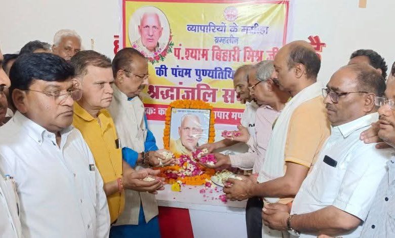 व्यापारी राजनीति के जनक पं. श्याम बिहारी मिश्र जी की पंचम पुण्यतिथि पर श्रद्धांजलि सभा आयोजित