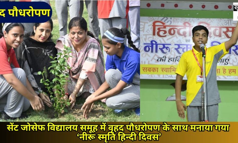 सेंट जोसेफ विद्यालय समूह में पौधरोपण व सांस्कृतिक कार्यक्रमों के साथ मनाया गया नीरू स्मृति Hindi Diwas 2025