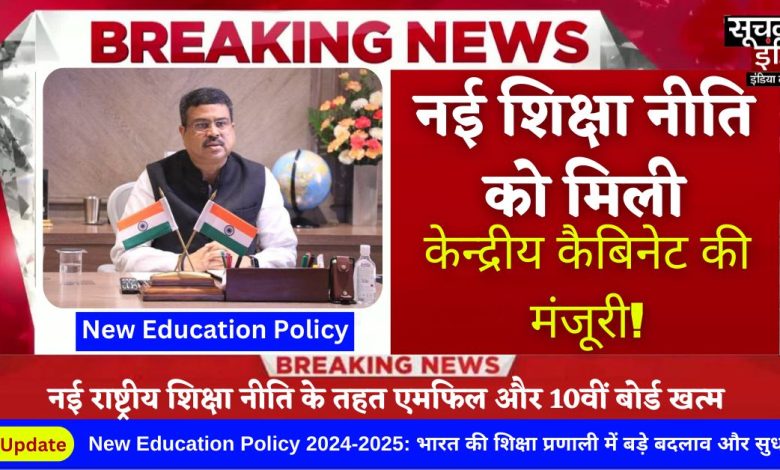 भारत सरकार द्वारा प्रस्तावित नई शिक्षा नीति (New Education Policy) को केंद्रीय कैबिनेट की मंजूरी मिलने के बाद 34 वर्षों बाद शिक्षा प्रणाली में बड़े बदलाव किए गए हैं। नई राष्ट्रीय शिक्षा नीति के तहत एमफिल और 10वीं बोर्ड खत्म कर दिए गए हैं, और यह नीति शिक्षा क्षेत्र में सुधार और आधुनिकरण का संकेत है।