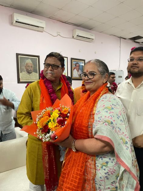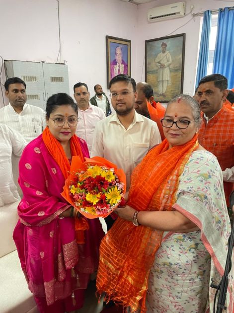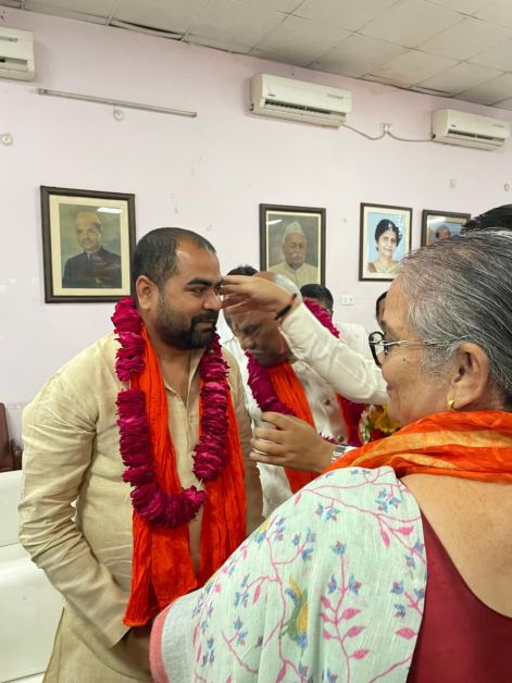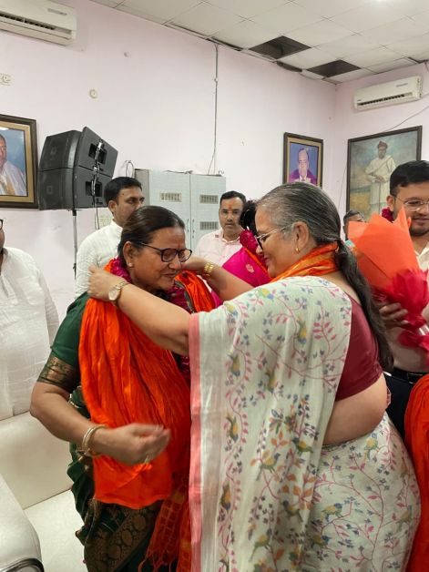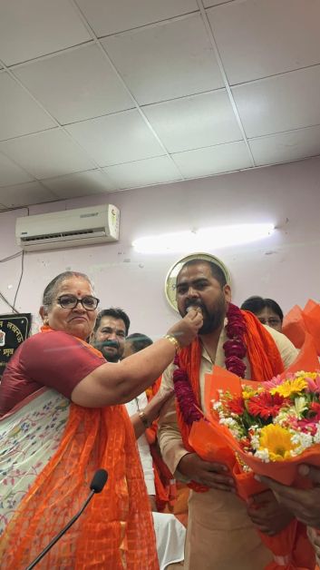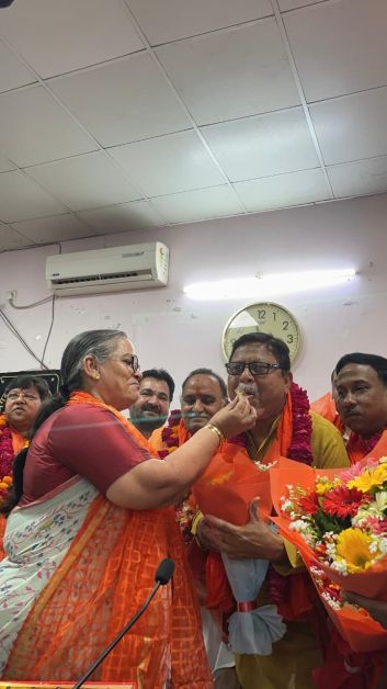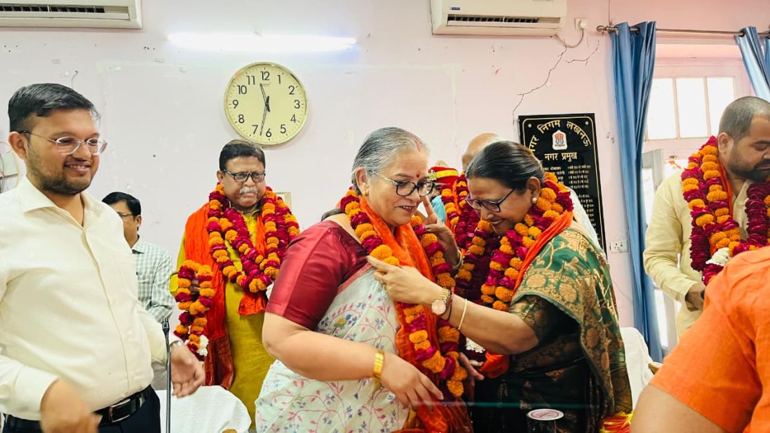 शपथ ग्रहण के उपरांत महापौर सुषमा खर्कवाल जी ने नगर आयुक्त गौरव कुमार के साथ सभी पार्षदों को माला पहनाकर उनका स्वागत किया और लड्डू खिलाकर बधाई एवं शुभकामनाएं दीं।