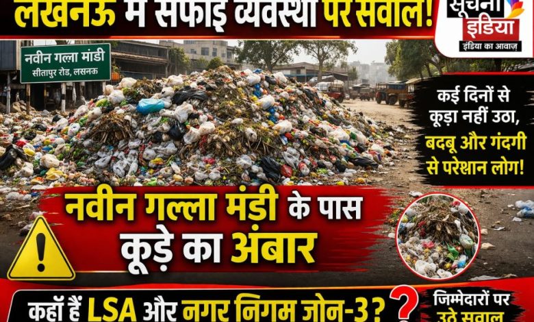 राजधानी लखनऊ में सफाई व्यवस्था एक बार फिर सवालों के घेरे में है। सीतापुर रोड स्थित नवीन गल्ला मंडी के पास कूड़े का बड़ा ढेर लगा हुआ है, जिससे इलाके में आने-जाने वाले आढ़तियों, व्यापारियों और ग्राहकों को भारी दिक्कतों का सामना करना पड़ रहा है। स्थानीय लोगों का कहना है कि कई दिनों से कूड़ा नहीं उठाया गया, जिससे बदबू और गंदगी लगातार बढ़ती जा रही है। हालात ऐसे हैं कि यहां संक्रामक बीमारियों के फैलने का खतरा भी मंडरा रहा है।