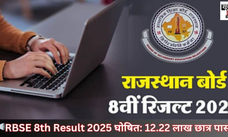 RBSE 8th Result 2025 घोषित: 12.22 लाख छात्र पास | Shala Darpan Result लिंक