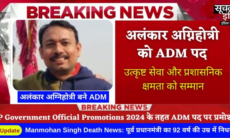 UP Government Official Promotions 2024: अलंकार अग्निहोत्री को ADM पद पर प्रमोशन और 6600 Grade Pay